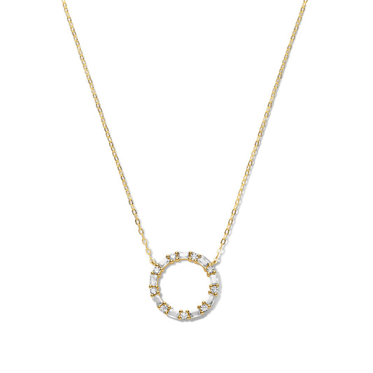 (56947) Halsketting met 18 Zirkonia wit/helder Sterling Zilver 925/000 goud verguld