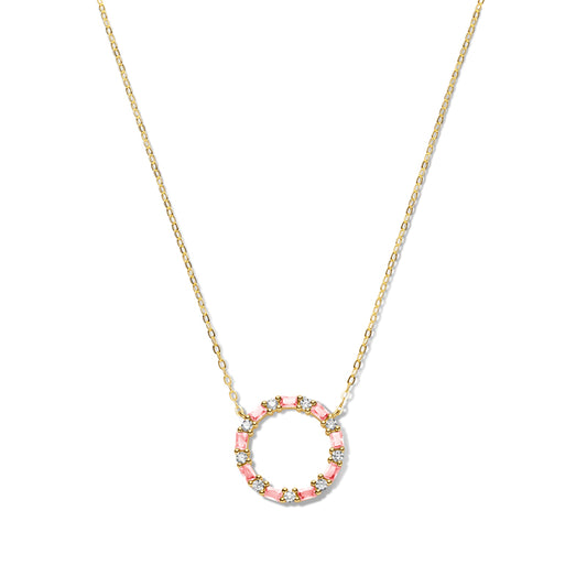 (56948) Halsketting met 18 Zirkonia wit/roze Sterling Zilver 925/000 goud verguld