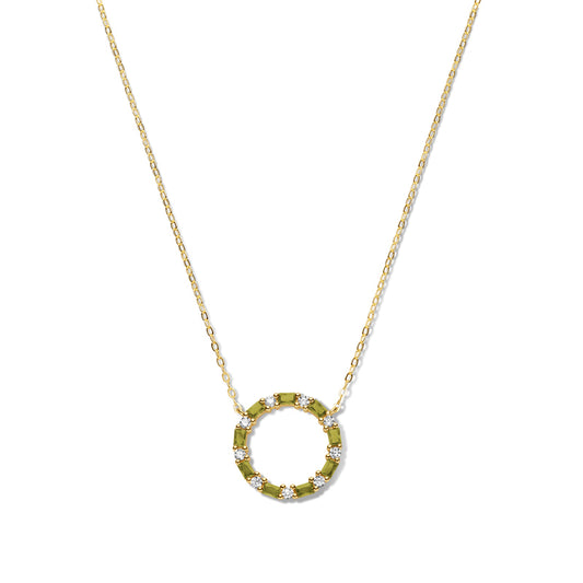 (56949) Halsketting met 18 Zirkonia wit/olijfgroen Sterling Zilver 925/000 goud verguld
