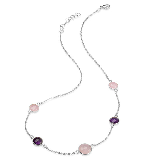 (59033) Halsketting met Roze en Lila Kwarts Sterling Zilver 925/000