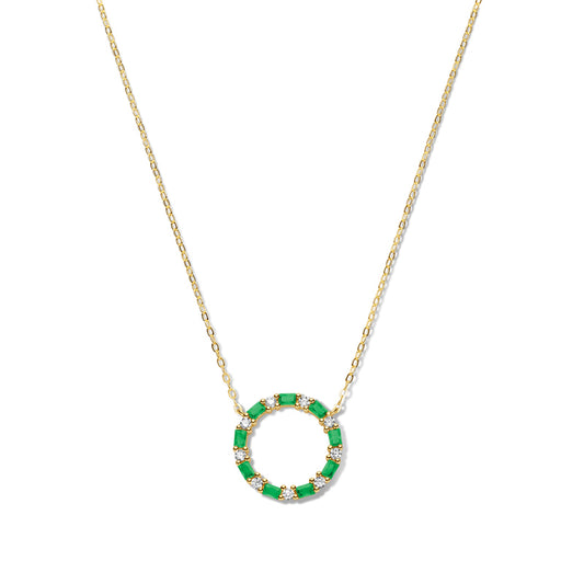 (56950) Halsketting met 18 Zirkonia wit/groen Sterling Zilver 925/000 goud verguld