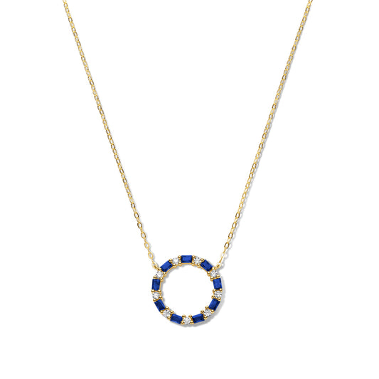 (56951) Halsketting met 18 Zirkonia wit/blauw Sterling Zilver 925/000 goud verguld
