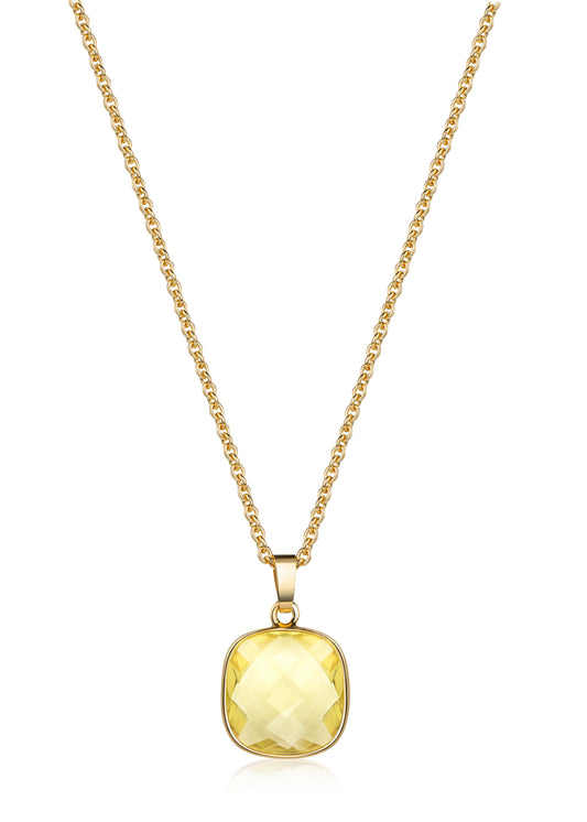(59058) Halsketting met Lemon Kwarts 15 mm x 15 mm Sterling Zilver 925/000 goud verguld