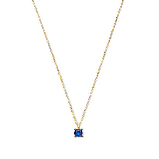 (56945) Halsketting met Saffierblauwe Zirkonia Ø 5 mm Sterling Zilver 925/000 goud verguld