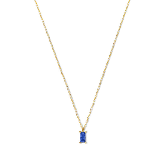 (56939) Halsketting met Saffierblauwe Zirkonia 6 mm x 3 mm Sterling Zilver 925/000 goud verguld