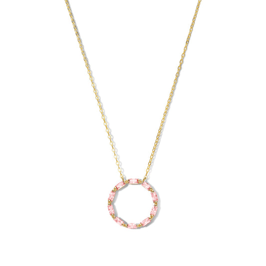 (56954) Halsketting met 10 Roze Zirkonia Sterling Zilver 925/000 goud verguld
