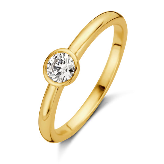 Bague solitaire 56520 avec zircone de 4 mm, argent 925/000 plaqué or.