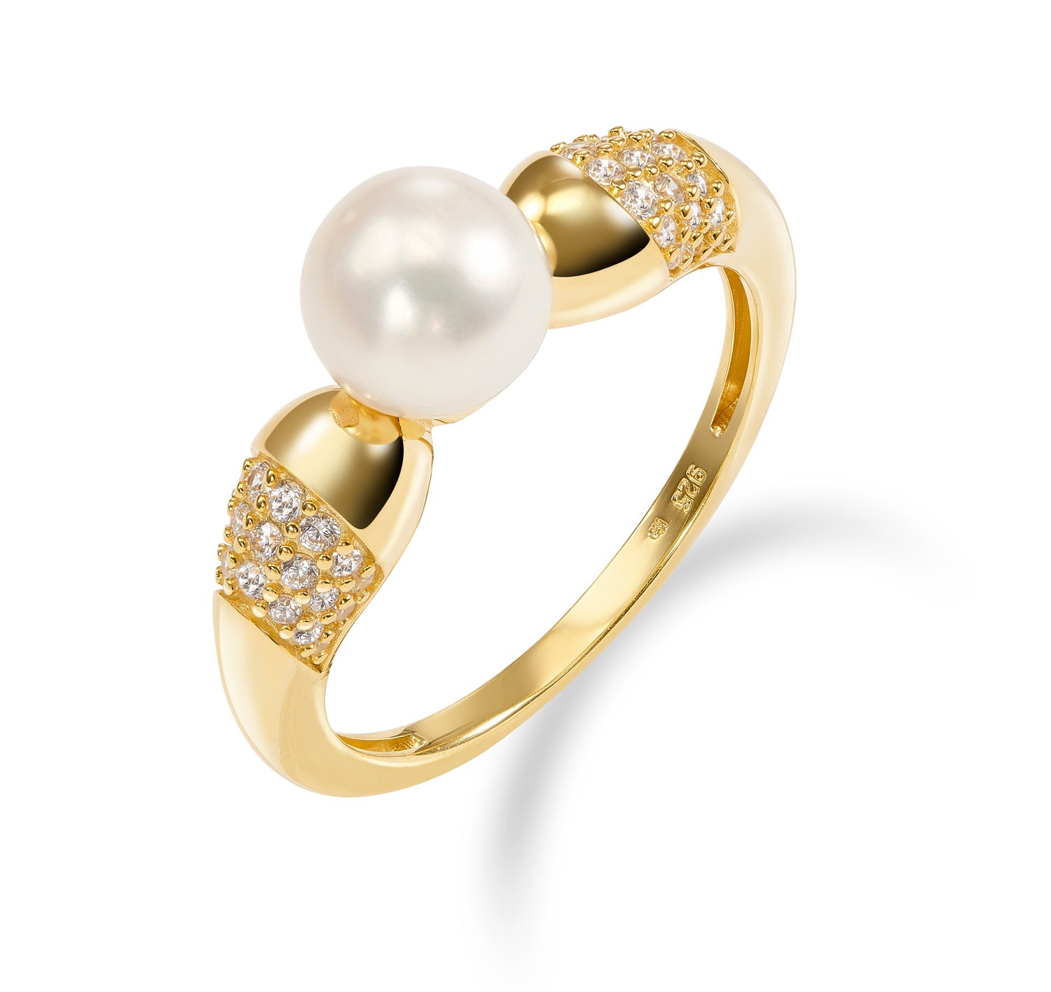 (54316) Bague pour femme avec perle d'eau douce et 42 zirconias, argent sterling 925/000 plaqué or.