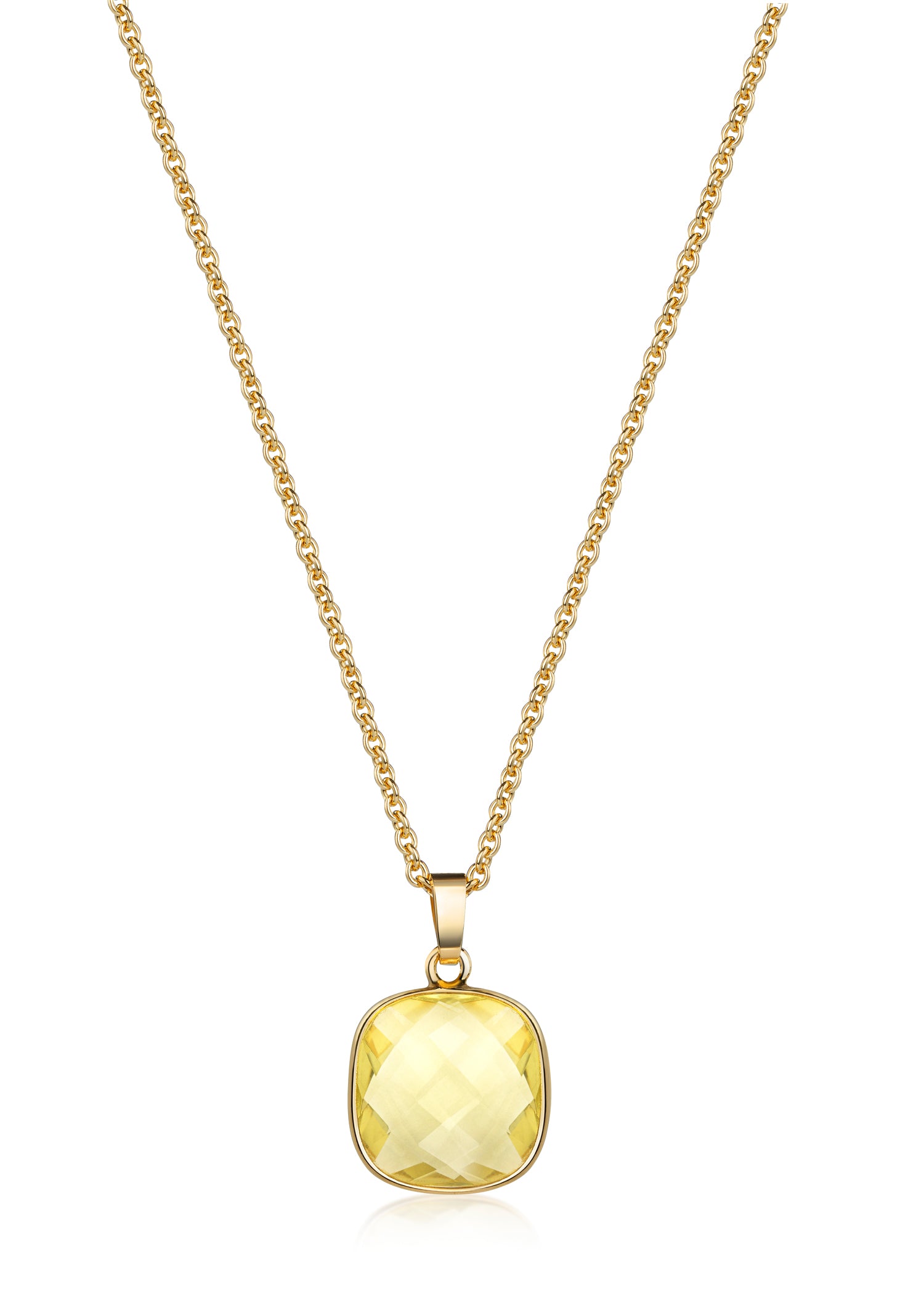 (59058) Collier avec quartz citron 15 mm x 15 mm, argent sterling 925/000 plaqué or.