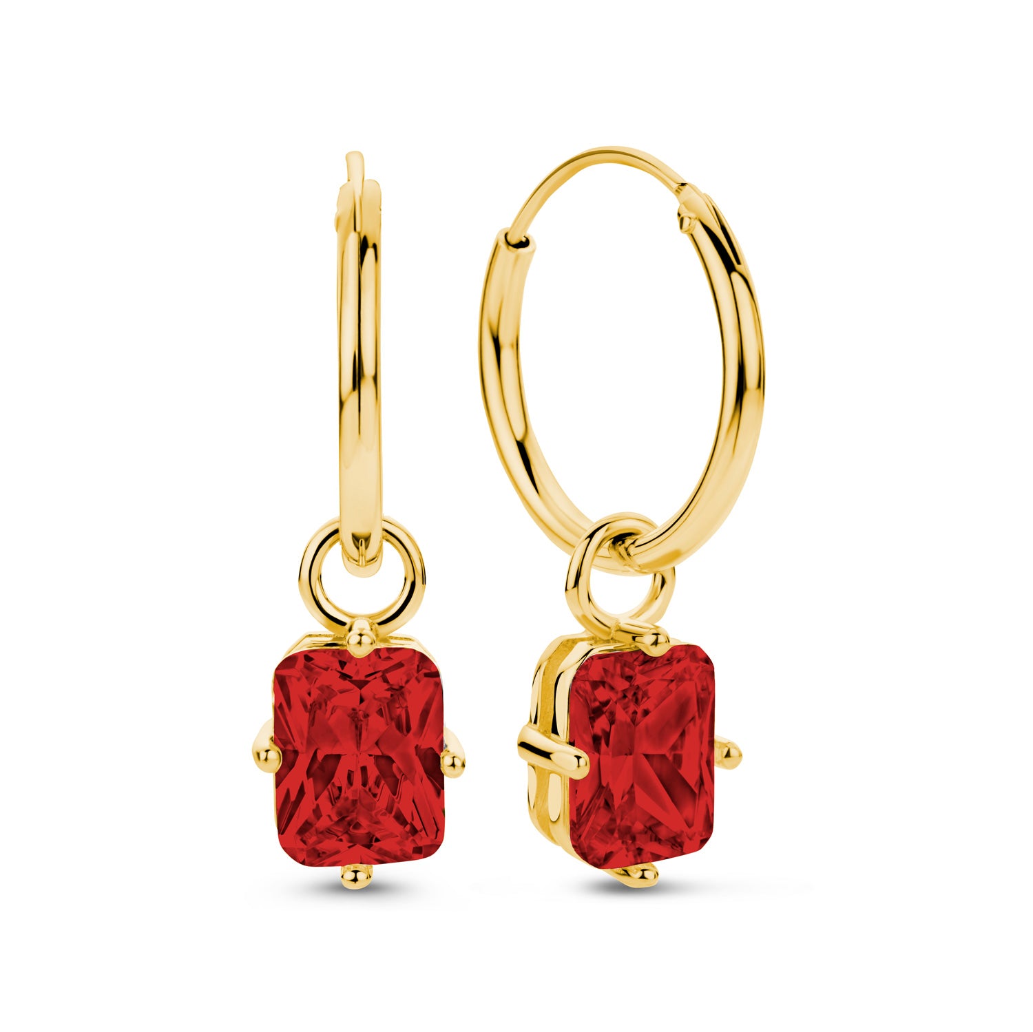 Creolen Ø 15 mm Hanger met rode Zirkonia
