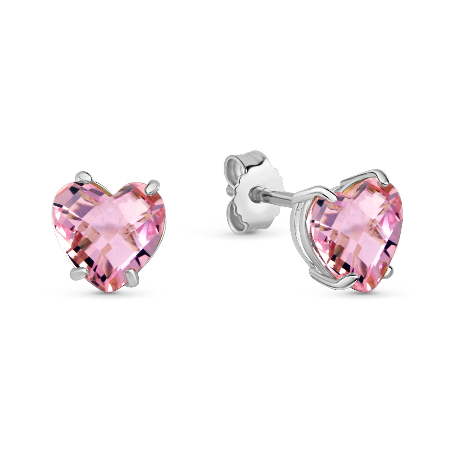 (54170) Oorknopjes Hart Roze Kristal Gefacetteerd Sterling Zilver 925/000