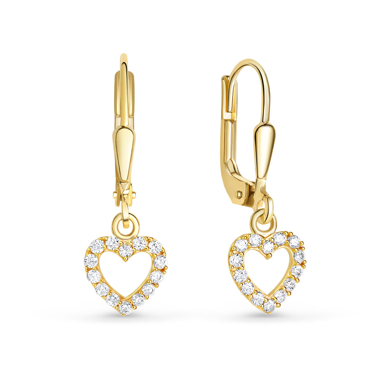 (54211) Oorbellen 'Hart' met 28 Zirkonia Sterling Zilver 925/000 goud gelaagd