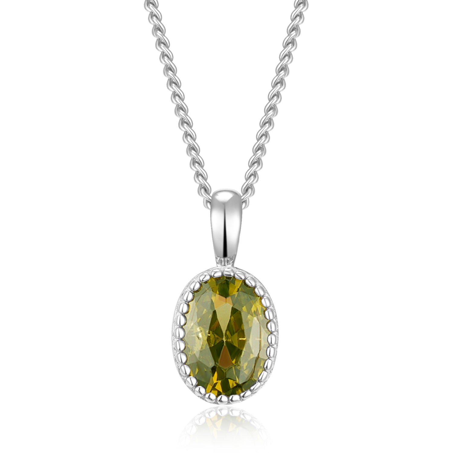 (8711) Halsketting met hanger Olijf Groene ovale Zirkonia Sterling Zilver