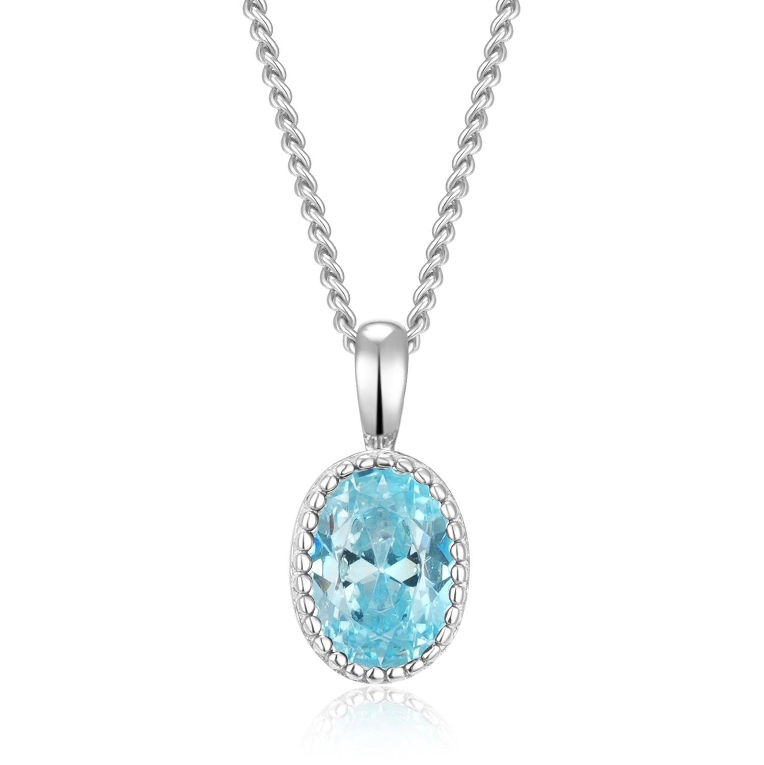 (8754) Halsketting met hanger Aqua Blauwe ovale Zirkonia Zilver