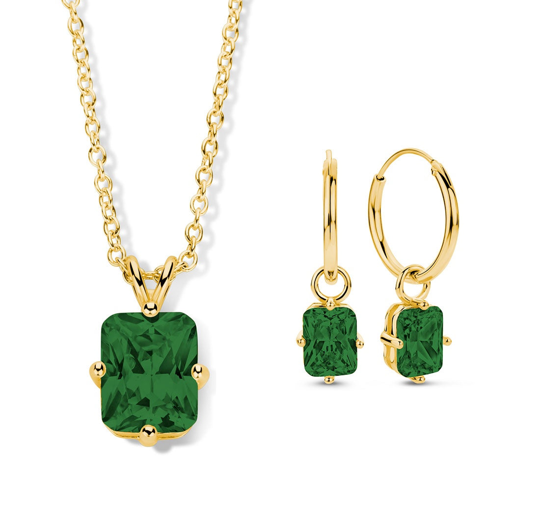(51274) Halsketting met Groene Zirkonia 8x10mm Sterling Zilver 925/000 goud verguld